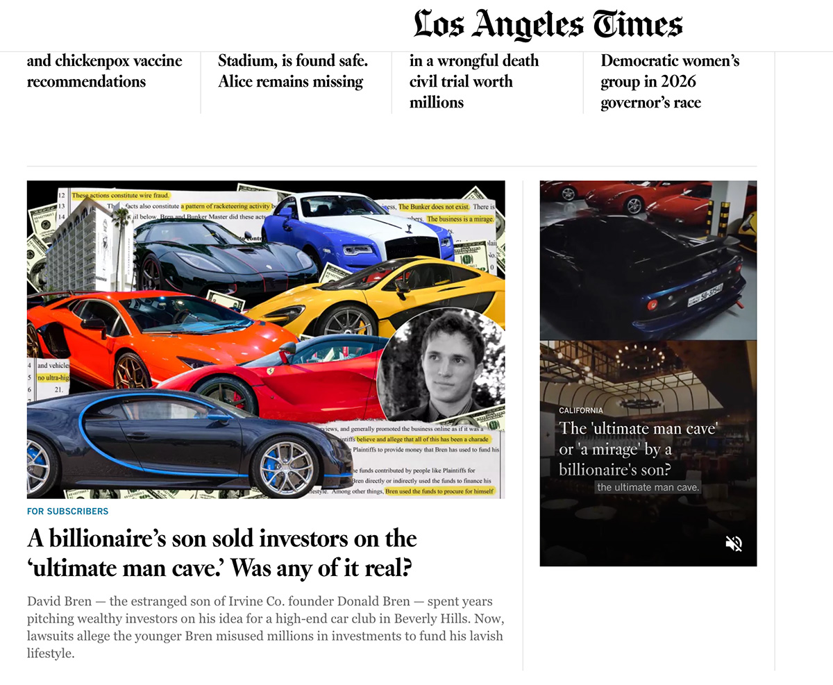 Just something random and kinda funny. I woke up this morning to find a friend in a WhatsApp group had shared an LA Times article that randomly included a picture of my car I had taken when I had visited The Vault. The picture was in a video that talked about a guy who sold investors on the concept of an ultimate man cave where for a monthly fee they’d have access to high-end vehicles. Totally random.