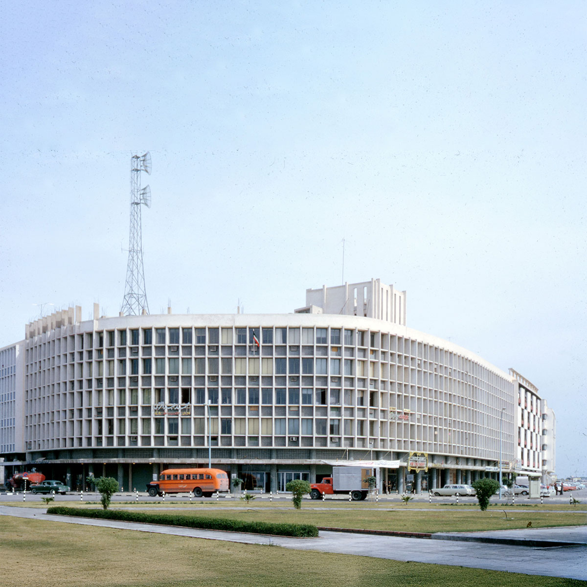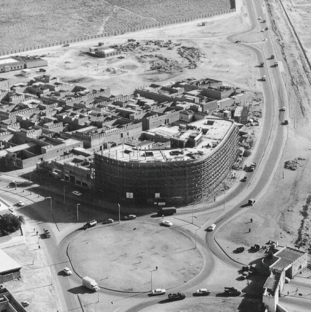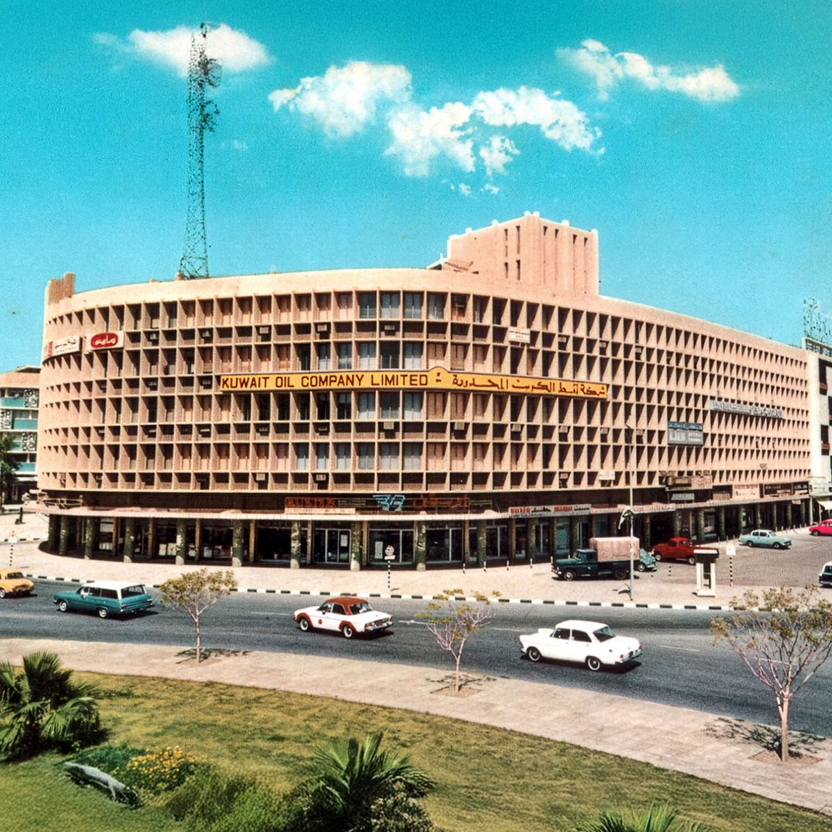 When the building was constructed in the 1950s, it was considered one of the most advanced in Kuwait. In the photo above the building is under construction while surrounded by traditional Kuwaiti houses, a very noticeable contrast at the time.