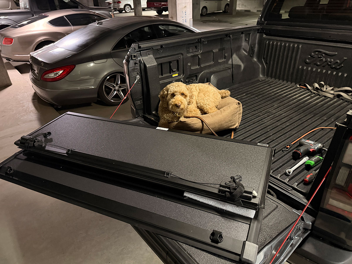 I think the cover looks really great. It has a very low profile and looks pretty OEM. On the Hilux I had a roll cover but over time with our dusty weather the rolling mechanism kept getting stiffer and stiffer. This new cover I got won’t have that problem since it flips open in three parts. Also it doesn’t take up any space inside the bed while with the roll cover the box that cover rolled into took space inside the bed. Finally if I need to remove it for so reason it’s super easy, there are two knobs I can loosen up with my hands and then pull off the cover.