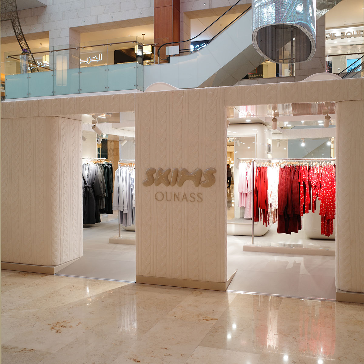 The way the pop up works is that you can check out the Skims collection on display, but if you want to purchase anything you’ll need to scan the QR code on the price tag. The QR code takes you to the Ounass app where you can complete the purchase and have the item delivered to you.