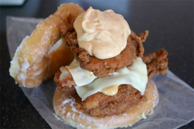You’ve probably already read about the new KFC sandwich that got launched in the States called the Double Down in which they replaced the buns with fried chicken. Well someone was able to improve on the KFC recipe by bringing back the bun to the sandwich in the form of a Krispy Kreme donut and created the Luther Double Down. Don’t forget to add the extra sauce… [Link]