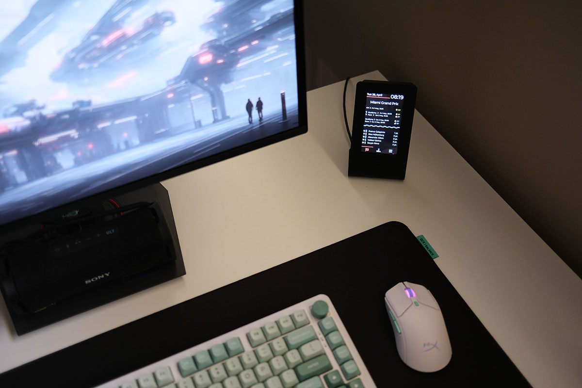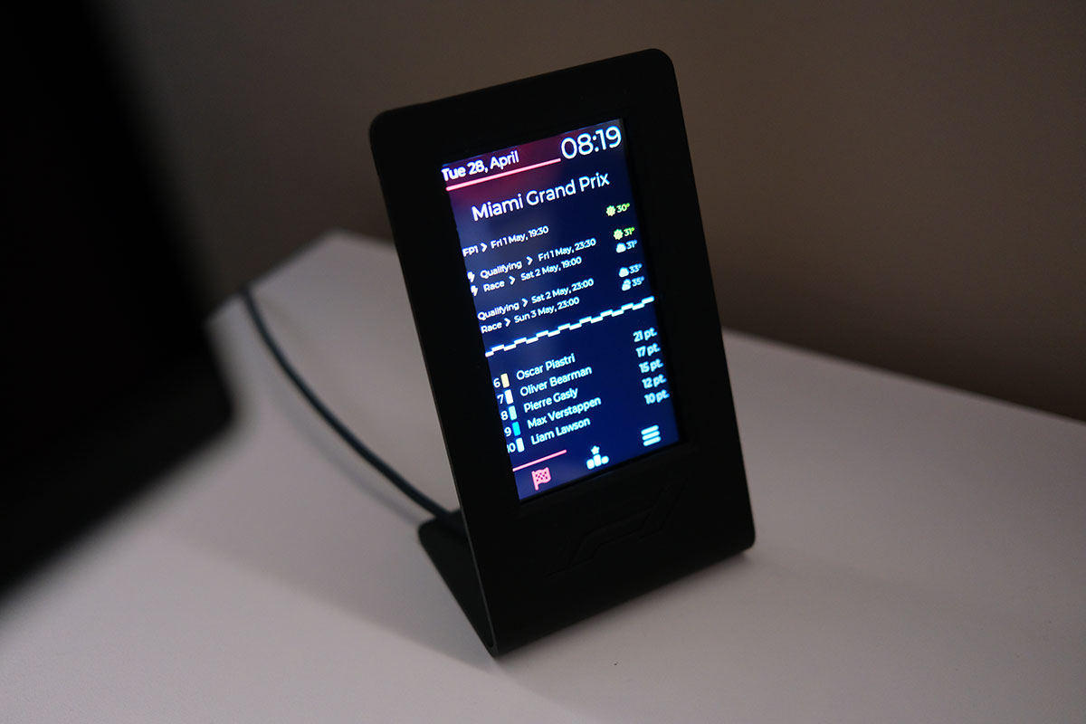 Once you get the screen you just plug it in to USB-C and visit the website halof1.com so you can flash the screen through the browser with the Halo F1 software. Then it’s a matter of connecting to the screen’s Wifi and filling in your home network details and thats it. The screen updates the info automatically through your home wifi network, displays the upcoming race dates and timings in your local time as well as other info like current driver standings.