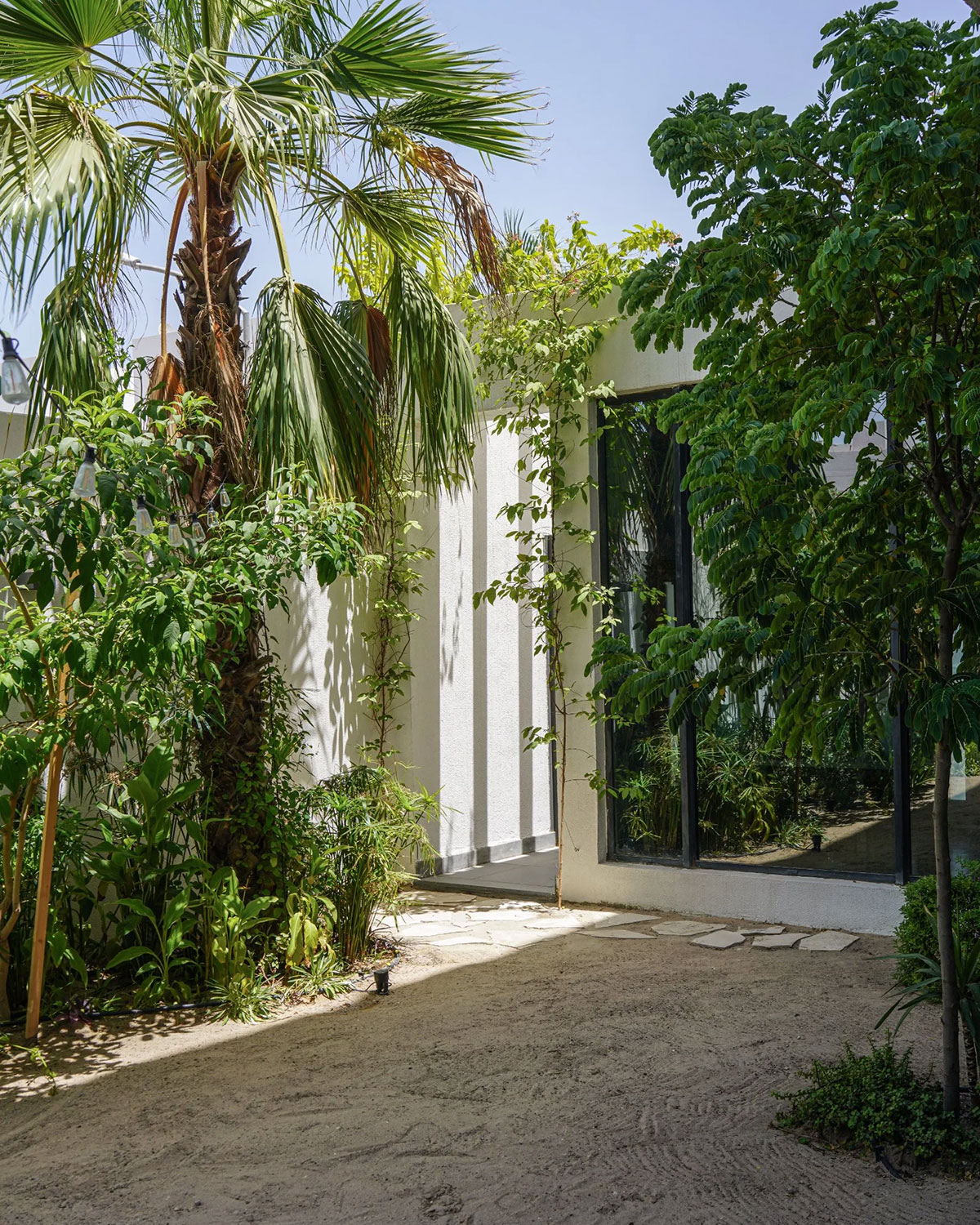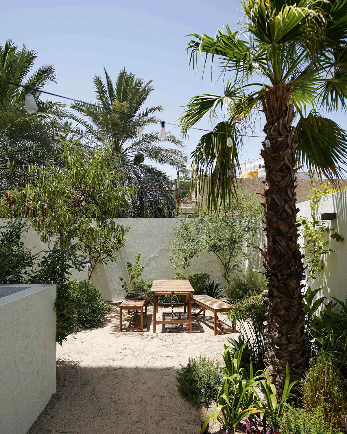 Instead of covering the ground with artificial or real grass, they decided to embrace the sand as a natural, breathable surface. According to Barari, they wanted to celebrate the desert rather than fight it. They planted dense greenery along with mature trees to create a cozy and immersive space. Even the kids play area encourages hands-on exploration and digging. It’s a simple idea that I think is executed beautifully, and they managed to convince me that sand doesn’t need to be covered but can actually be a beautiful part of the landscape.