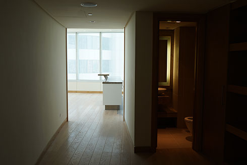 The residential apartments are located between floors 6 and 16. They have 1, 2 and 3-bedroom apartments and every floor has either 4 or 6 flats depending on how they’re divided. I wanted to see all three apartment sizes and when they asked me what floor did I prefer I told them the highest available. We headed to the 16th floor first to check out the 2-bedroom apartment.