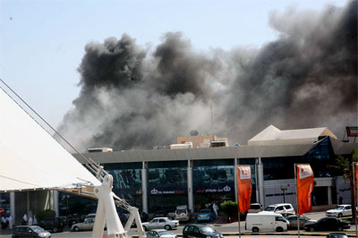 This is like the 3rd or 4th one this year. According to Al Watan breaking news they say the fire is in a garage. A reader sent in the picture above which he took from his office at Abyat. Looks like the fire is in the Behbehani warehouse and it looks huge. More pictures [Here]