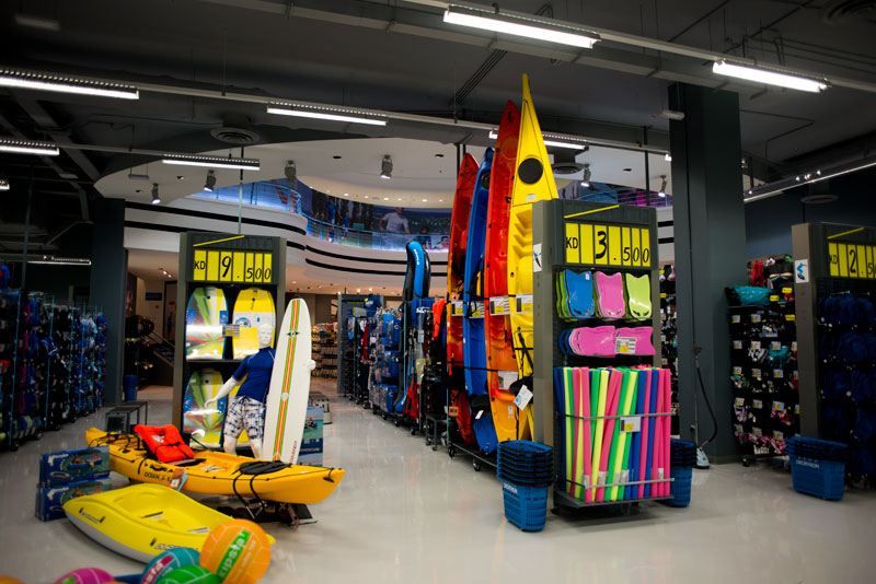Decathlon is a French brand and most of their stores have 18 different sections but the one in Kuwait will be missing two, climbing and hunting. The other 16 sections in the store are the following (taken from their website):