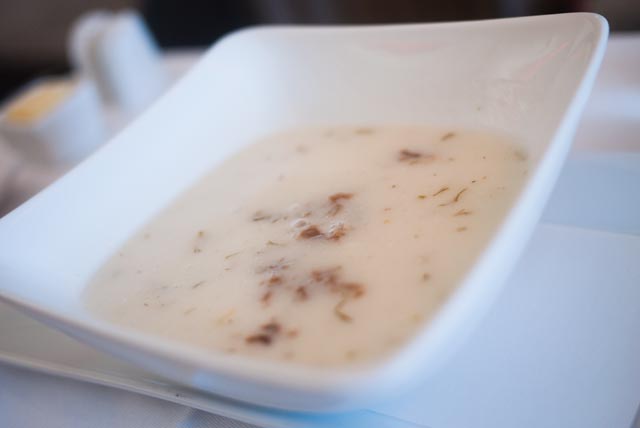 Since the flight was long we were served two meals, one around an hour after take off while the other around 2 hours before arrival. The chef handled everything related to the food including handing out the menus which I noticed were customized with our names. It’s a little thing but gives the meals a very personal touch. The first meal we started off with were light appetizers which they rolled out on a trolley. You just tell the chef what you want and he’ll fill up your dish for you. Once we were done with the appetizers we were served soup which they only had one option called the traditional Turkish wedding soup. I had it and it tasted kinda like the Lebanese dish called “kebbeh bi laban” and that’s probably because think they both involve the same elements, beef and some sort of creamy sauce. After that we were presented with three options for main course, Swordfish Brochette, Grilled Beef Tournedos or Artichoke Ravioli. I went with the beef, Nat with the fish. She didn’t end up liking her fish much but I loved the beef. Once we were done with lunch they rolled out the dessert trolley which had a lot of different goodies. I was pretty full so I just went with ice cream. For my second meal later on in the flight I had a pasta dish and it was also superb.